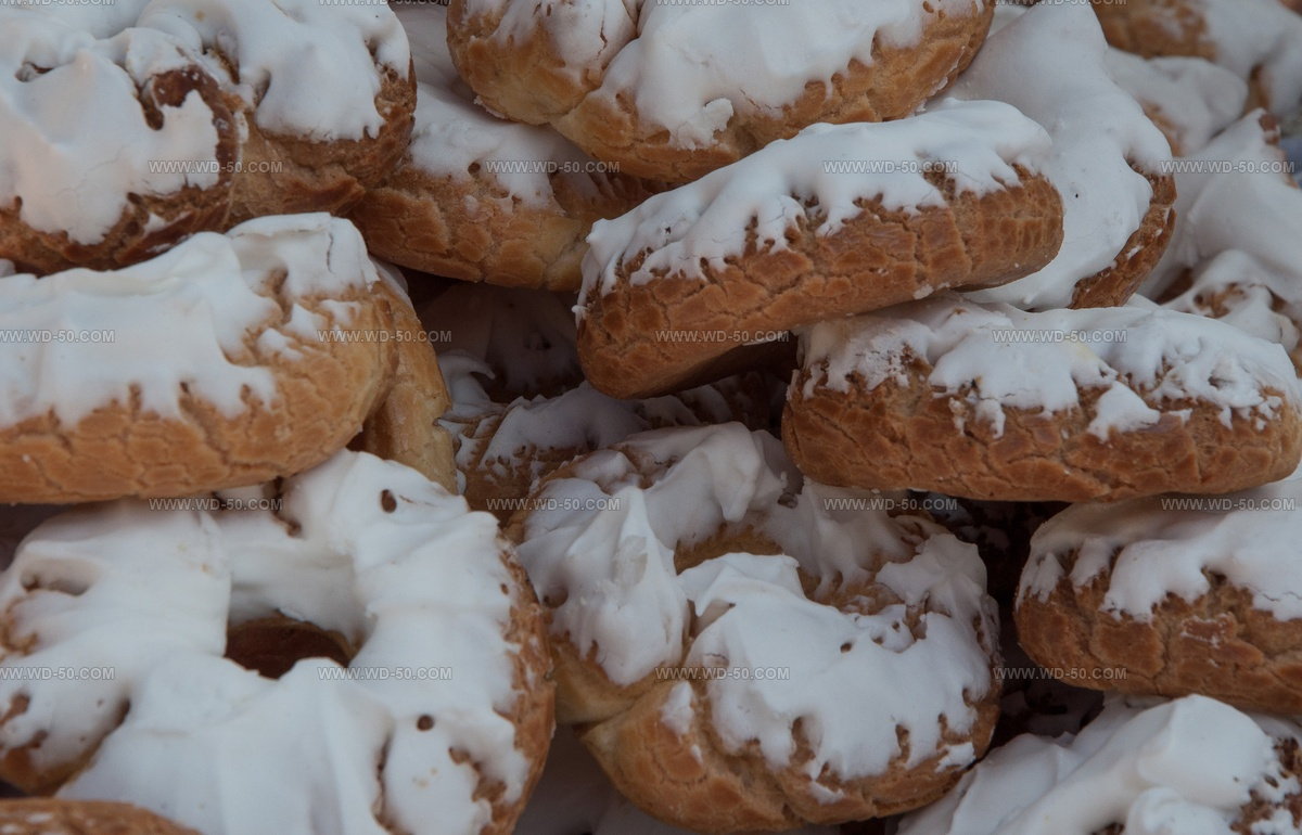 Flour, sugar, eggs, yeast, and water form the classic base ingredients for this iconic pastry.