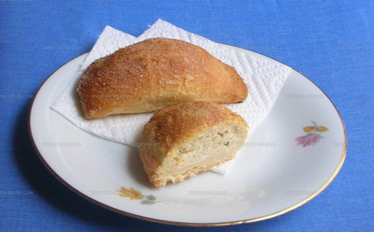 Thin rounds of pastry get filled with the translucent, thread-like pumpkin preserve made from cooked pumpkin and sugar.