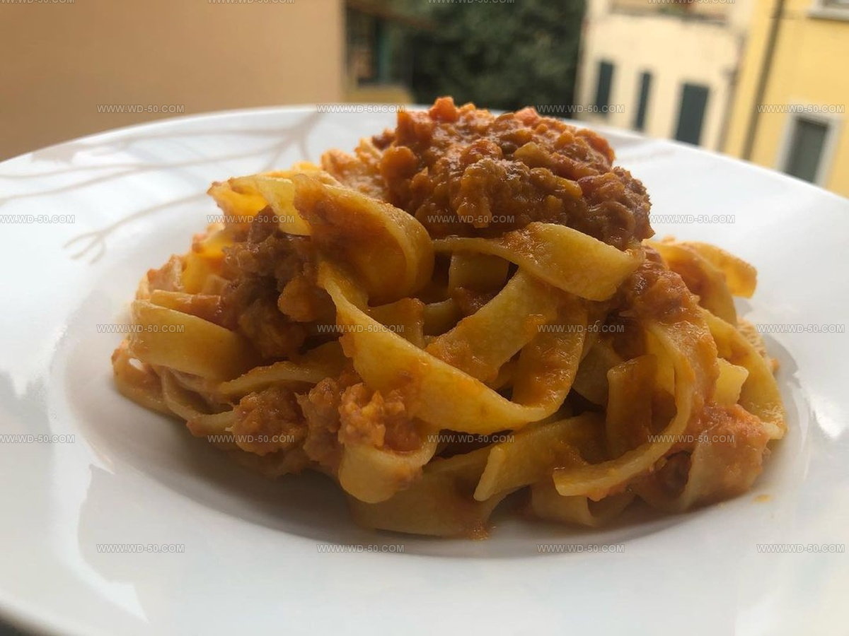 Italians savor this hearty ragu with multiple pasta varieties like tagliatelle, maltagliati, pappardelle, lasagna, and macaroni.