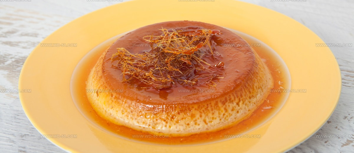 After baking in a water bath, the dessert is chilled and then inverted, revealing a glistening caramel surface.
