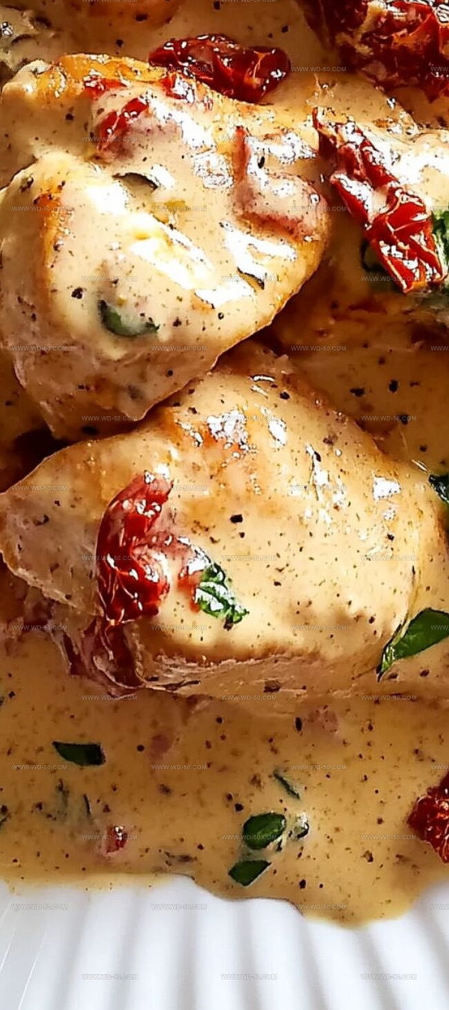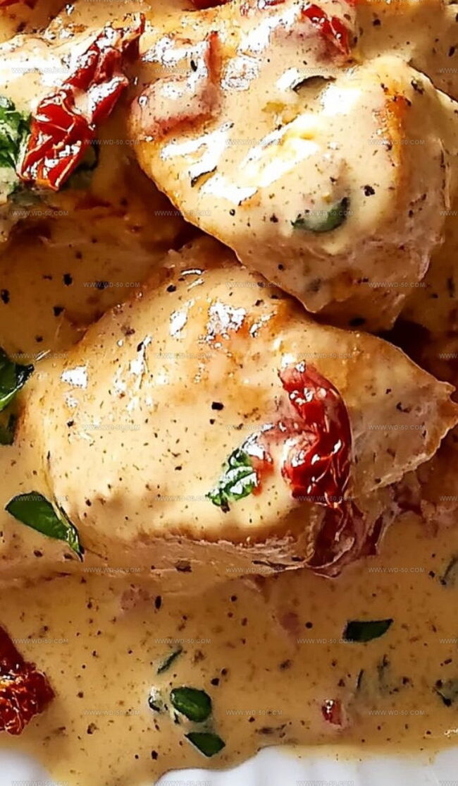 Tender chicken breasts bathe in a luscious, sun-dried tomato cream sauce that whispers comfort and elegance.