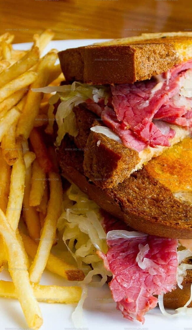 - Rye bread provides a robust, traditional foundation that stands up to the sandwich’s hearty fillings.
