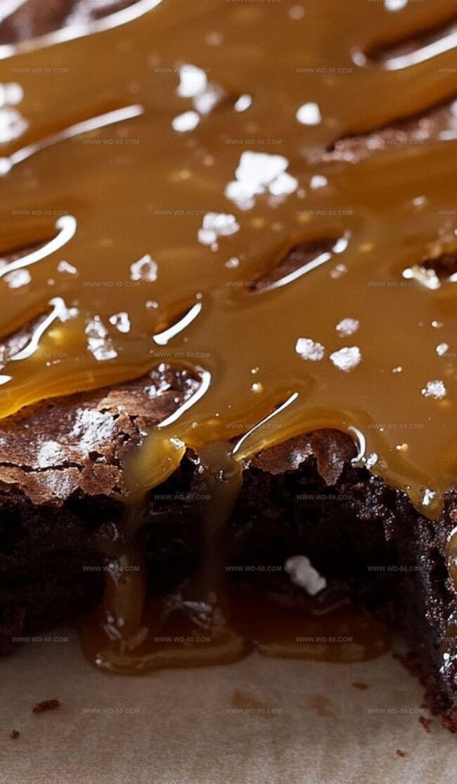 - Warm the caramel sauce in the microwave until it reaches a pourable consistency, stirring to achieve a smooth texture, then elegantly drizzle over the warm brownies and garnish with a sprinkle of flaky sea salt.