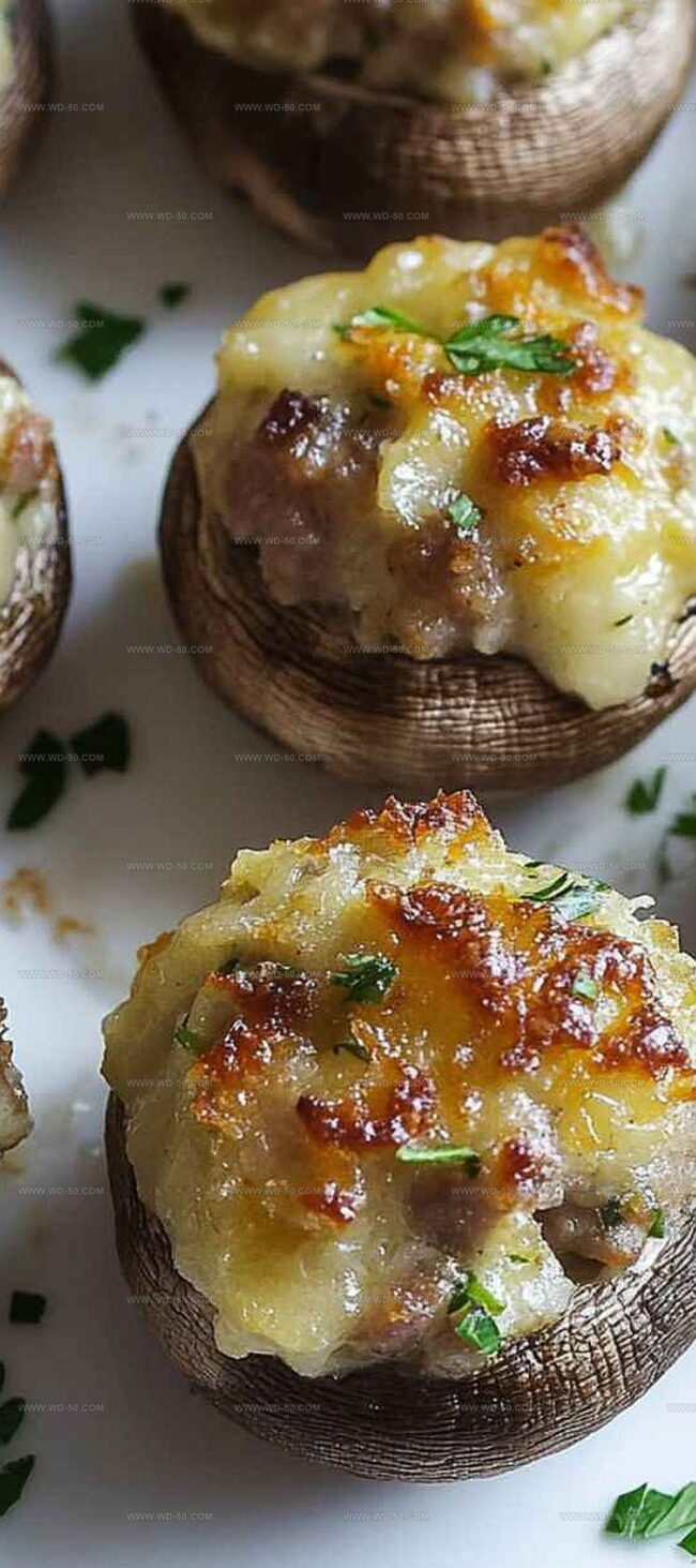 Sausage-stuffed mushrooms burst with flavor, transforming an ordinary appetizer into a culinary sensation.