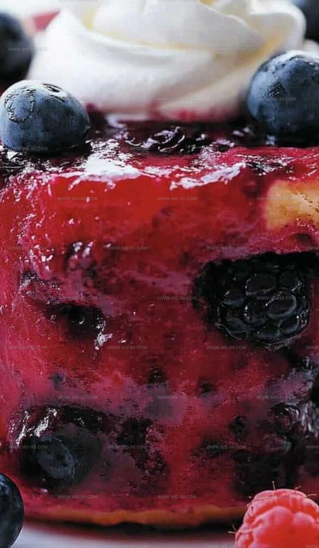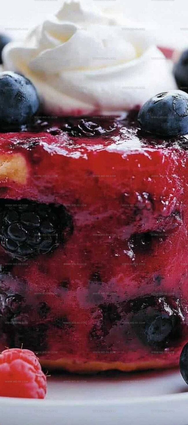 Layers of soft bread become silk-like vessels absorbing intense berry juices.