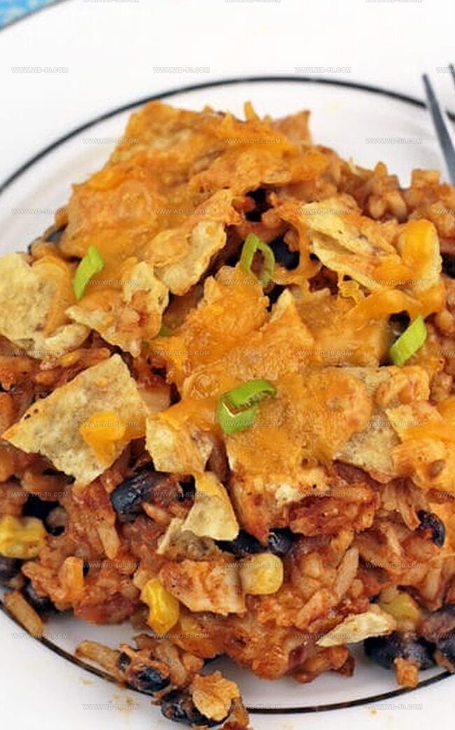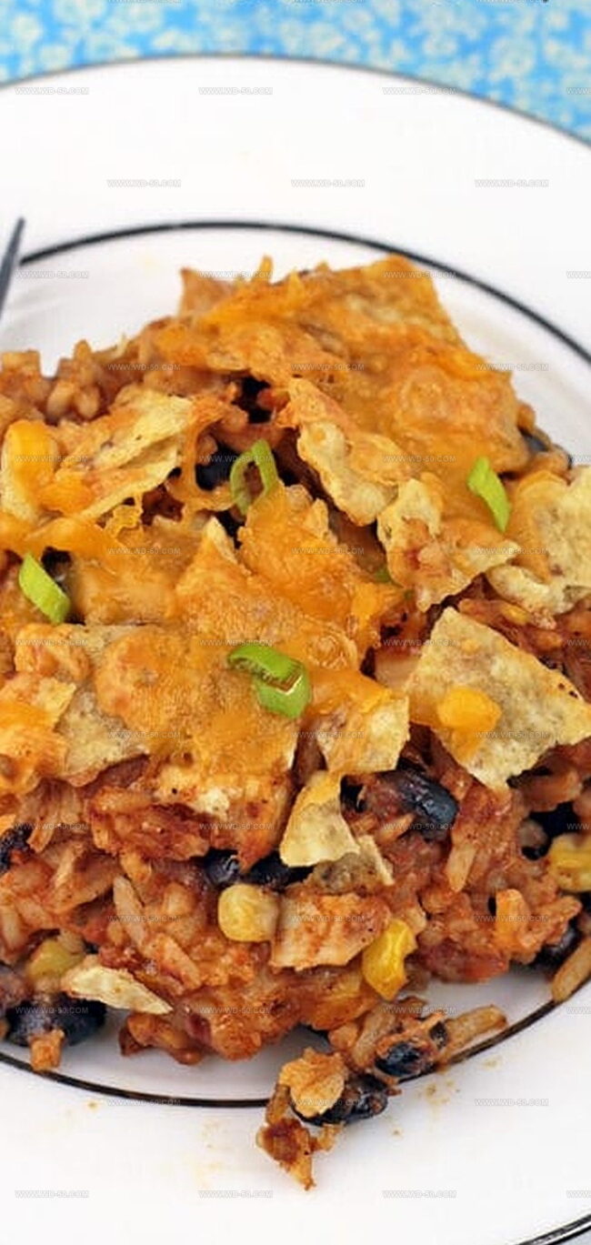 - Assembly and Baking: Preheat oven to 375°F (190°C). Grease a 9-inch baking dish and transfer the mixture, spreading evenly. Top with tortilla chips and remaining cheese.