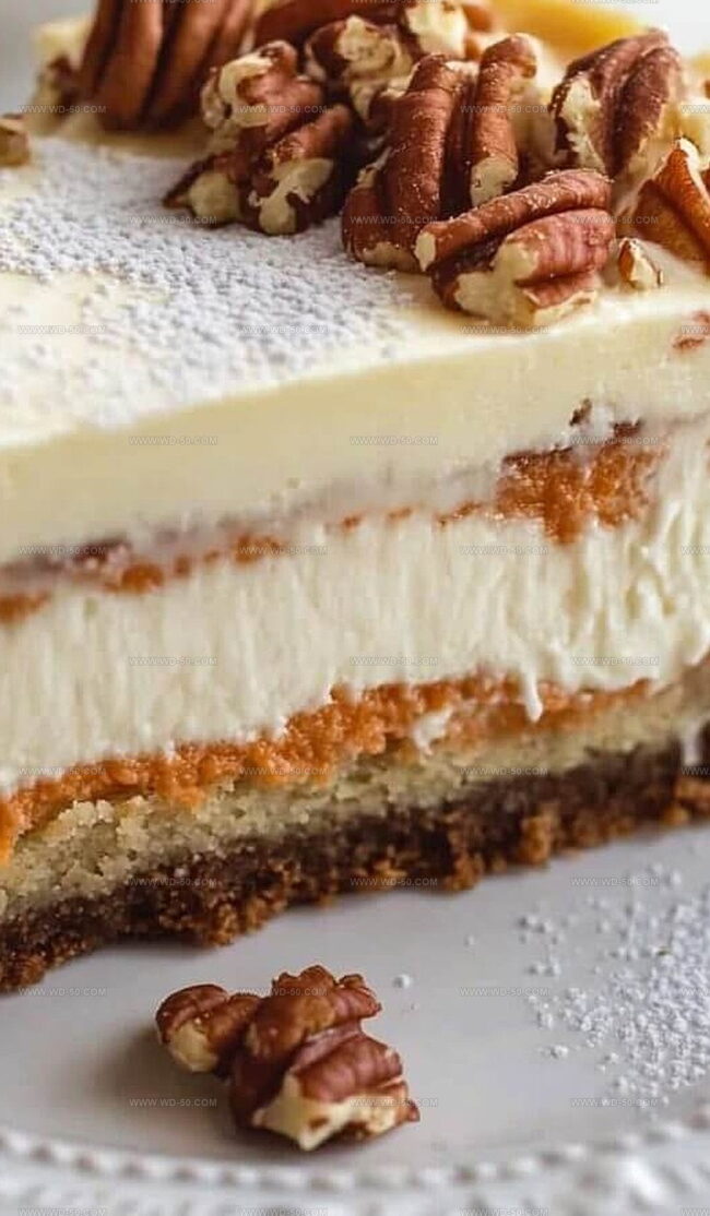 Layers of moist, spiced carrot cake mingle with smooth, tangy cheesecake for a dessert that’s nothing short of magical.