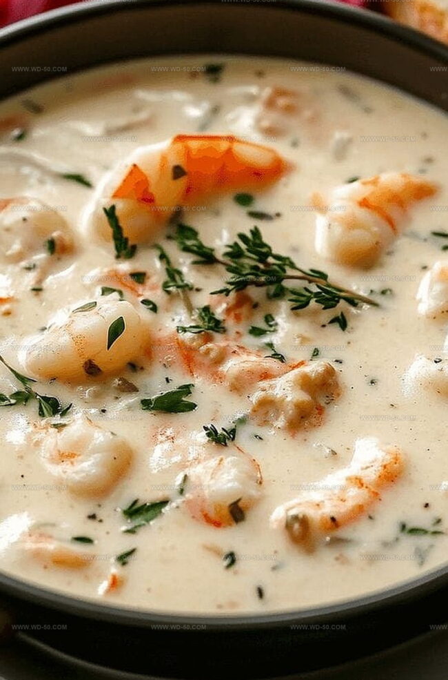 Creamy New England-style crab and shrimp seafood bisque combines rich maritime flavors with delicate shellfish. Elegant coastal cuisine delivers comfort in each spoonful that seafood enthusiasts will savor completely.