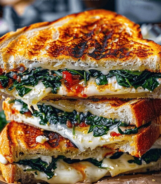 Cheese Layer Construction: Distribute shredded sharp cheddar evenly across bread, creating a melting canvas. Artfully arrange wilted spinach, sprinkle chopped sun-dried tomatoes, and crumble tangy feta across the surface.
