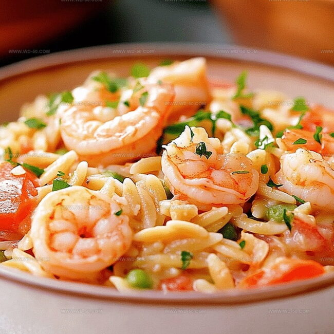 Orzo is a rice-shaped pasta that cooks quickly and has a unique texture, resembling grains of rice. It’s versatile and absorbs flavors well, making it perfect for one-pot dishes like this shrimp recipe.