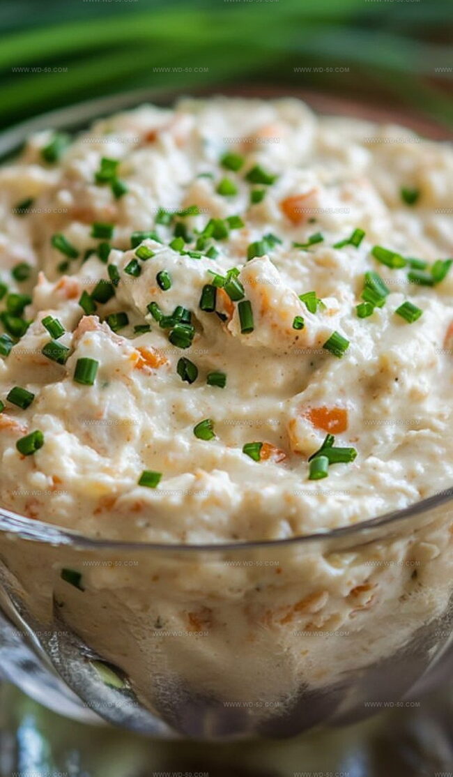 Tenderly introduce lump crab meat into the creamy mixture, using a gentle folding technique. Sprinkle in fresh chopped chives for a pop of green color and herbal freshness. The key is maintaining those delightful crab chunks for an authentic texture.