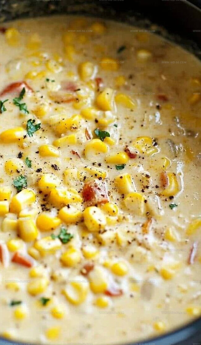 Tender potatoes and smoky bacon blend seamlessly with soft corn, creating a luxurious texture that melts in your mouth.