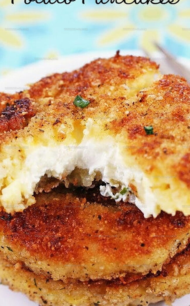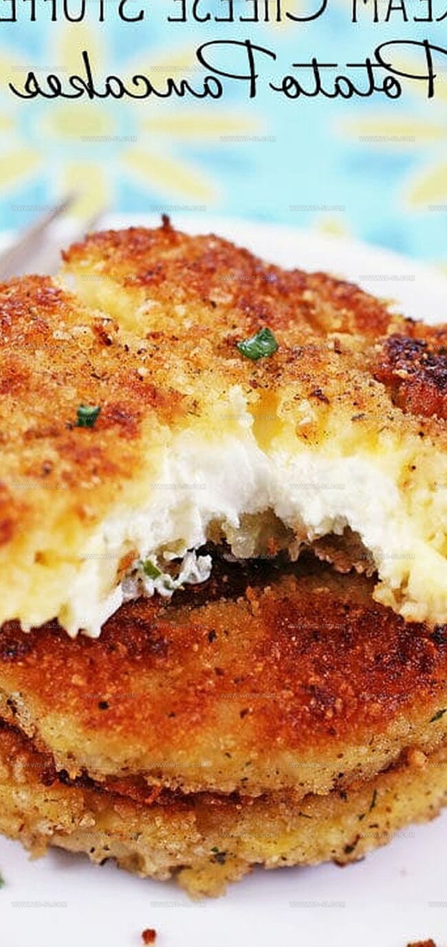 Pancake Assembly: Form potato mixture into thick discs, strategically place cream cheese center, and carefully enclose filling within potato mixture.