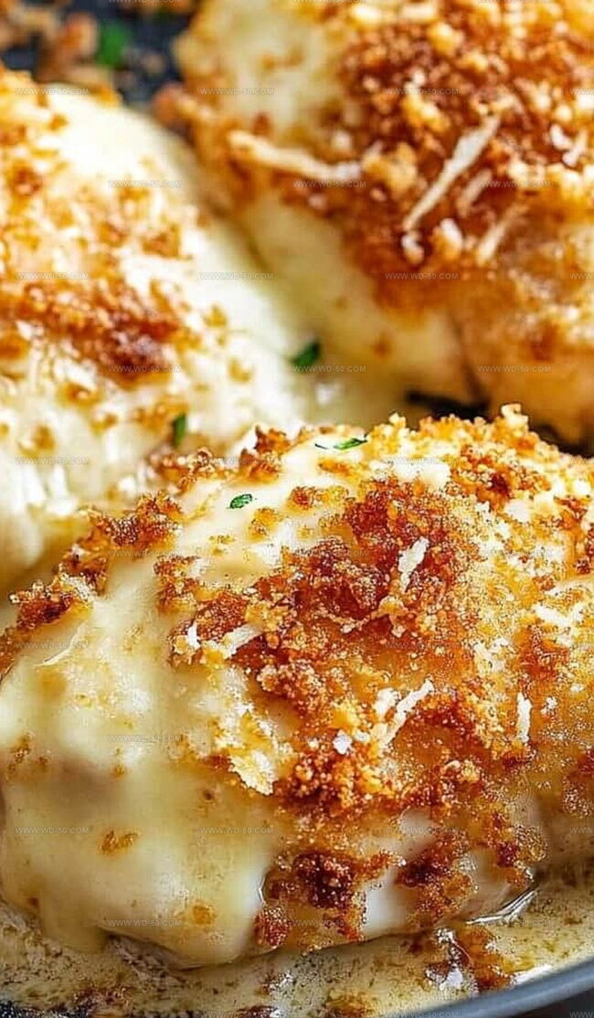 - Final Assembly: Transfer grilled chicken to an oven-safe dish. Spread ranch-Parmesan mixture over each breast, layer with provolone cheese, and generously sprinkle the prepared bread crumb mixture, pressing gently to adhere.