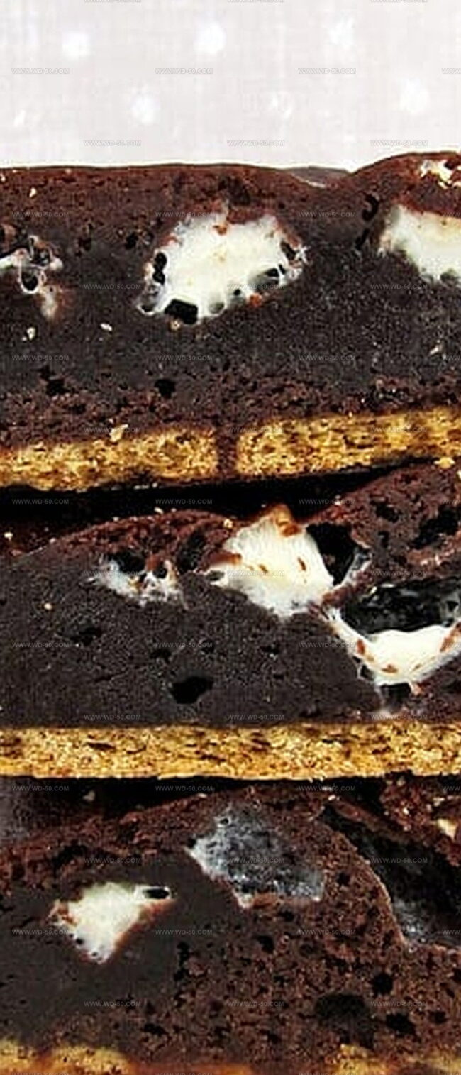 Allow the brownies to cool completely. Lift them out using the graham cracker base, then slice into delectable squares that reveal layers of gooey chocolate and fluffy marshmallow goodness.