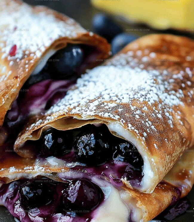 Mexican-inspired blueberry cheesecake chimichangas blend creamy dessert magic with crispy tortilla perfection. Warm golden exterior gives way to luscious blueberry and cream cheese filling that delights palates with rich, unexpected flavors you cannot resist.