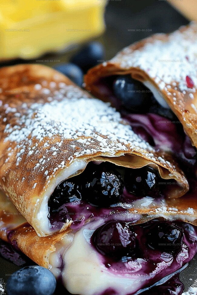 Crispy tortillas wrap around a luscious cream cheese and blueberry filling, creating a mouthwatering fusion of flavors.