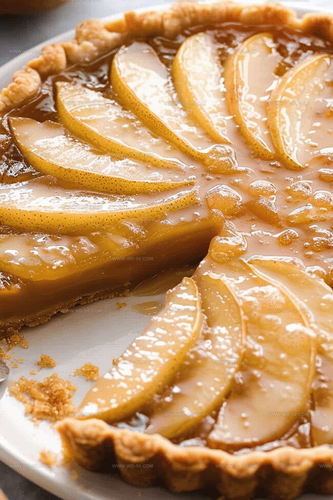 Pear Landscape Artfully layer soft, ripe pear slices across the golden pastry base, overlapping them like gentle waves.