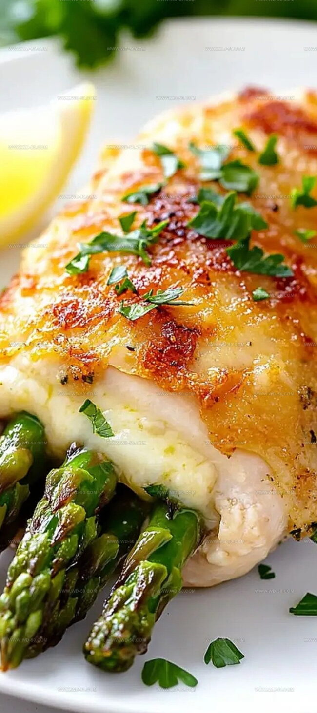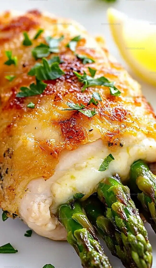 Crisp asparagus spears nestle inside juicy chicken, creating a mouthwatering combination that satisfies your hunger.