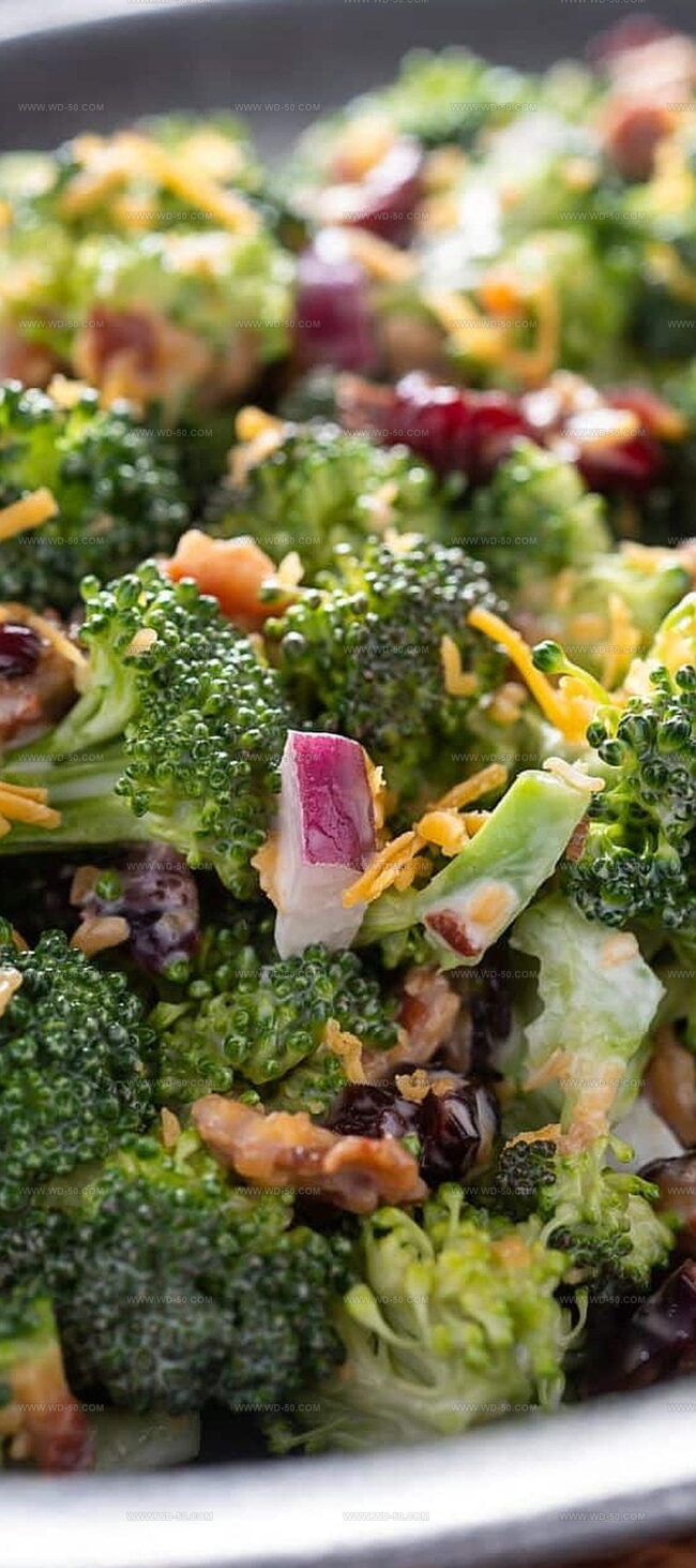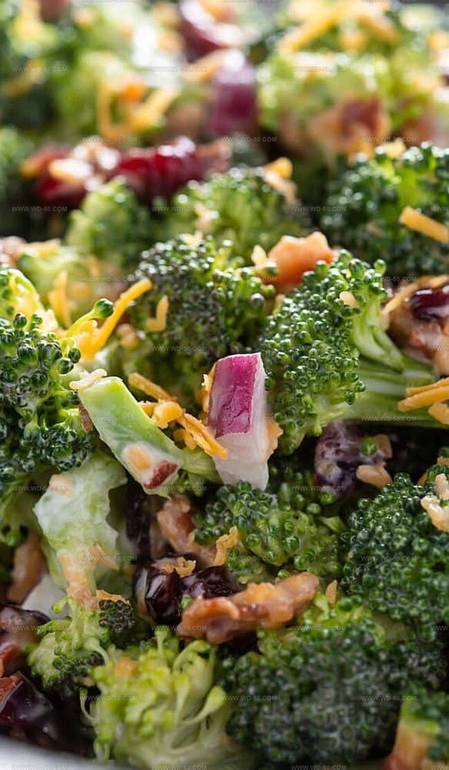 Crisp broccoli florets dance alongside sweet cranberries and salty bacon crumbles.