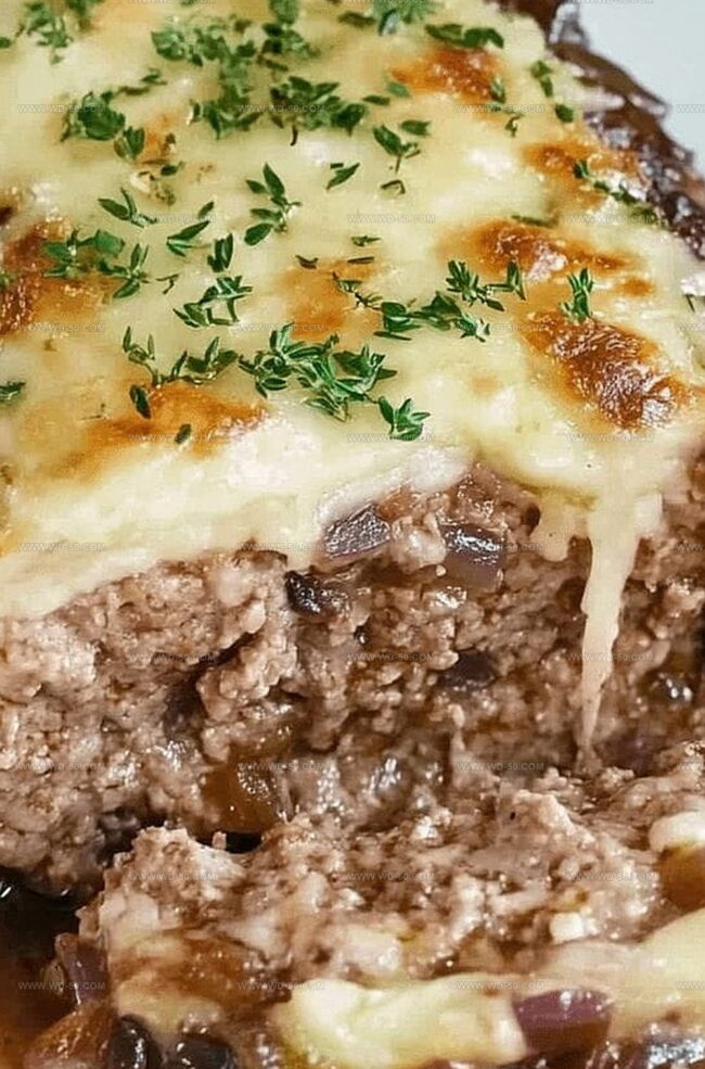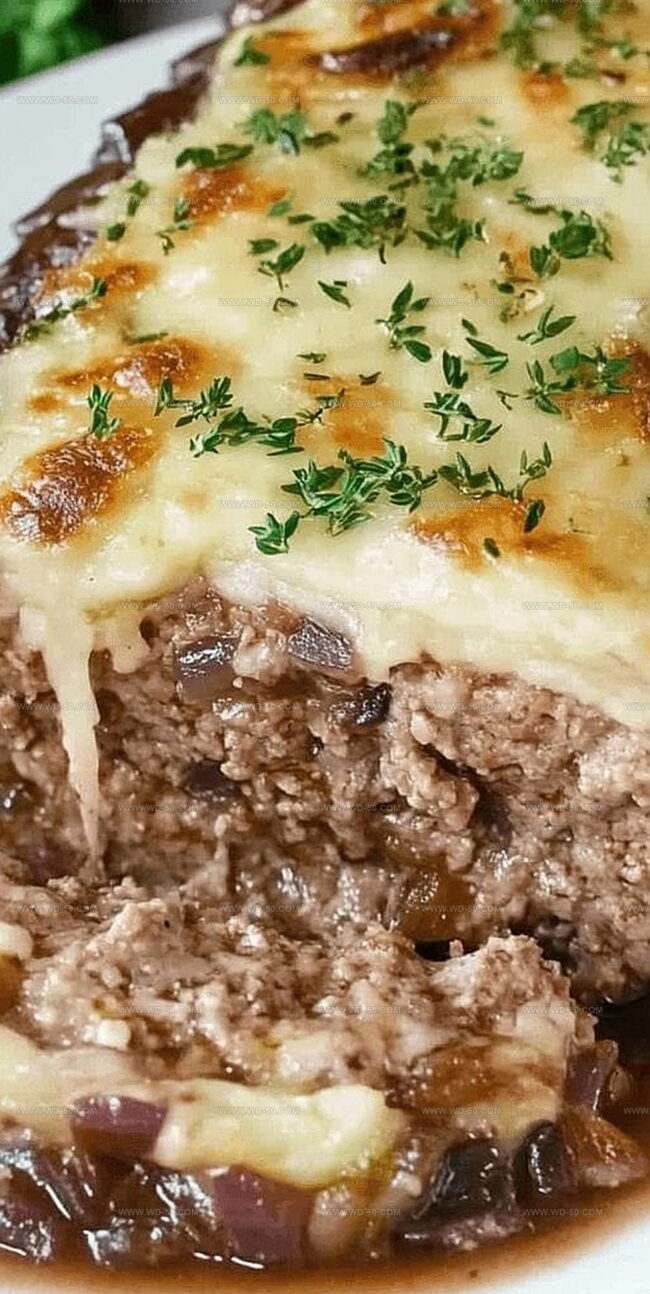 Hearty comfort food takes a delicious twist with this French onion meatloaf that combines classic flavors in a mouthwatering main dish.