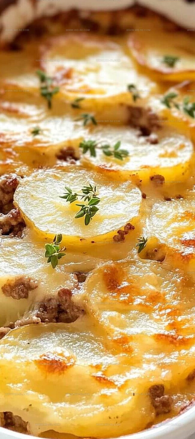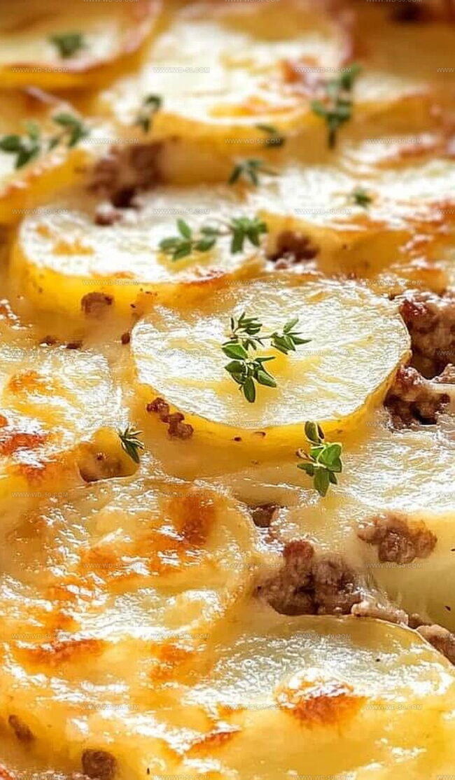 Layers of tender beef mingle perfectly with creamy potatoes in every delectable bite.