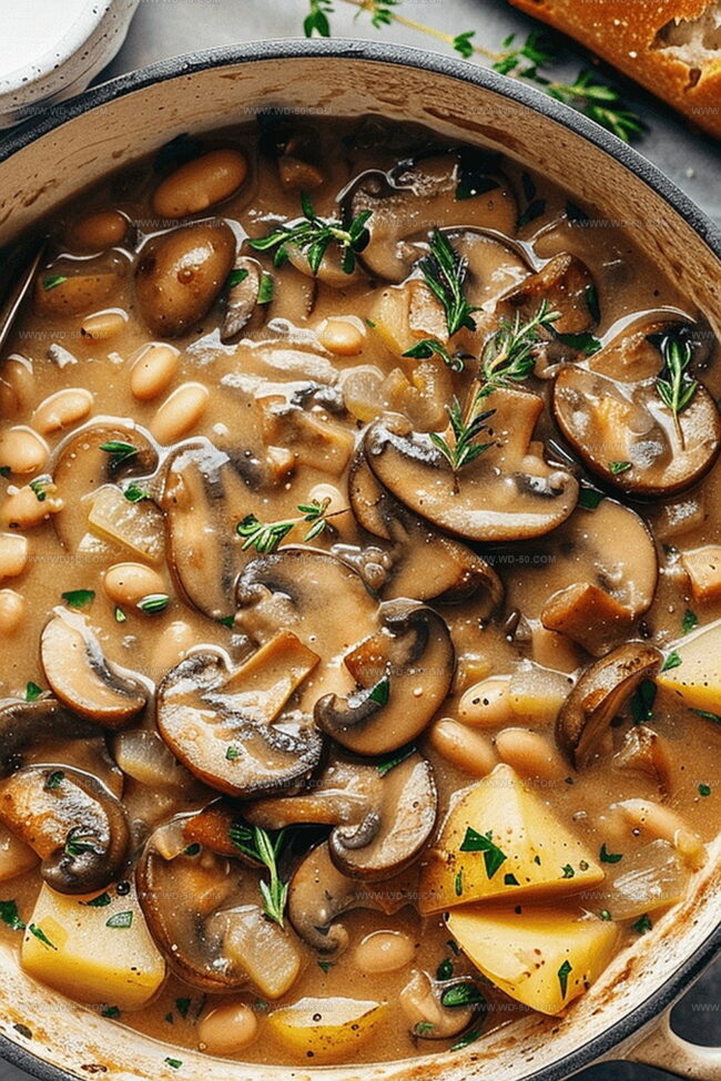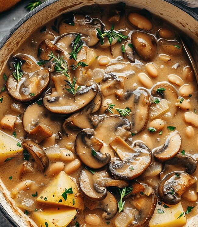 Hearty earthy mushroom and white bean stew delivers comforting Mediterranean flavors with rustic charm. Savory herbs and rich vegetables create a nourishing meal that connects home cooks with traditional culinary traditions.