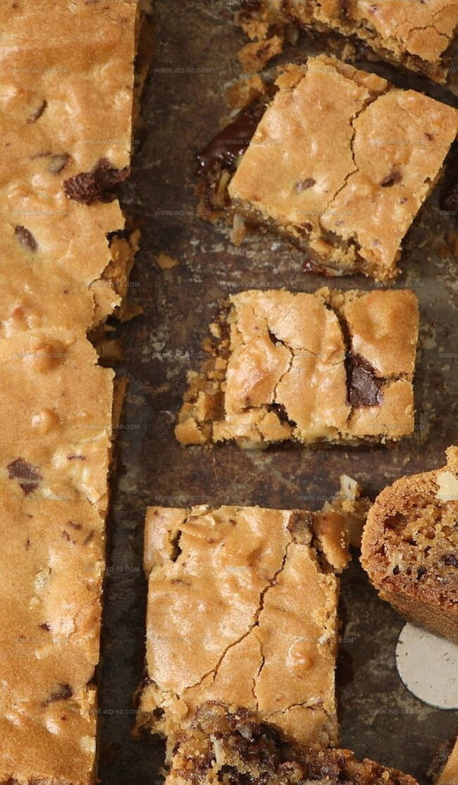 Her carefully crafted method ensures blondies that are perfectly golden and loaded with decadent chocolate pieces.