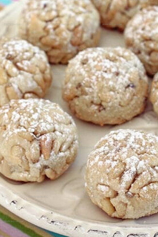 Nutty Coating Pine nuts spread out, ready to embrace each cookie with their golden, crunchy exterior.