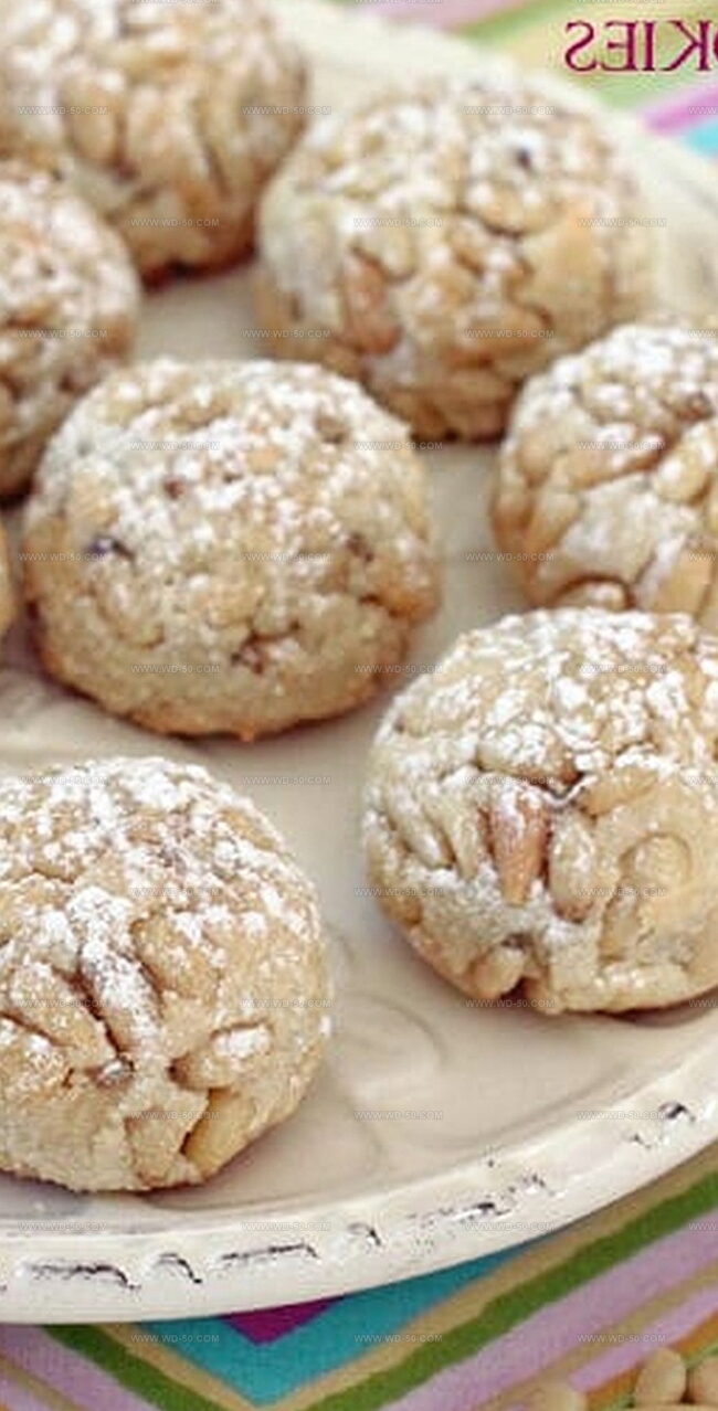 Nut Coating Technique: Roll cookies gently in pine nuts, applying light pressure to ensure complete and even coverage without crushing the delicate nuts.