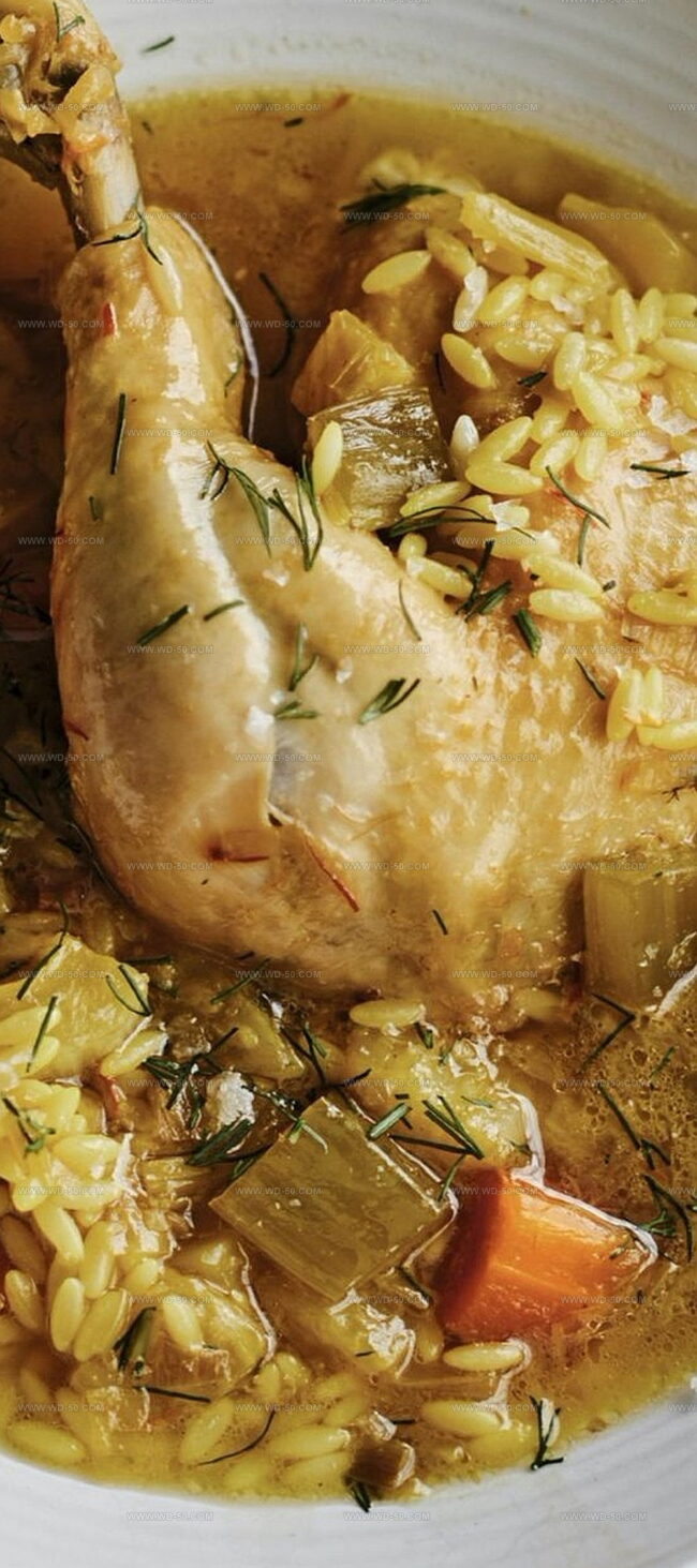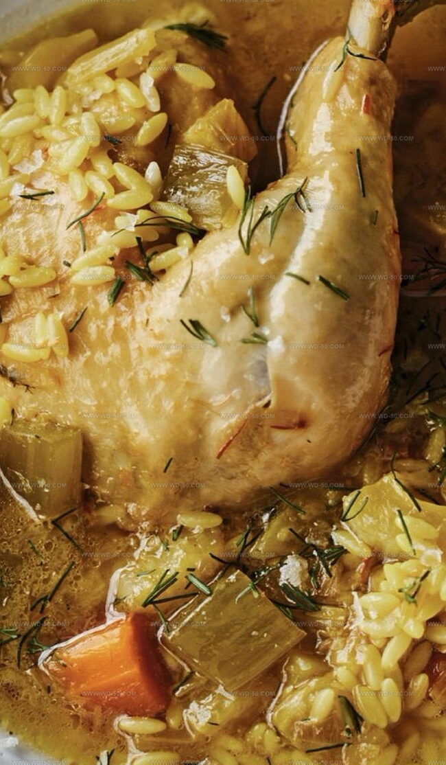 Hearty orzo nestles among succulent chicken pieces, inviting warmth and nourishment to your table.
