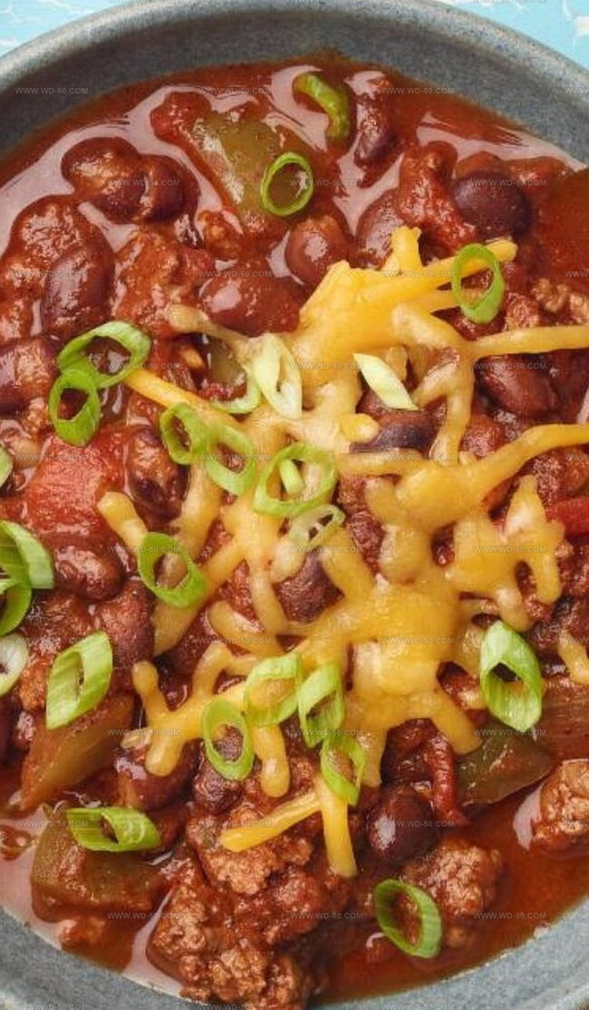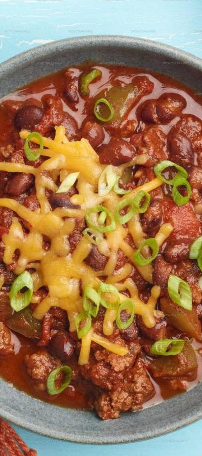- Serve the chili piping hot in individual bowls. Enhance the dish with optional garnishes: a generous dollop of sour cream, freshly grated sharp cheddar cheese, and thinly sliced scallions to provide contrasting textures and complementary flavors.