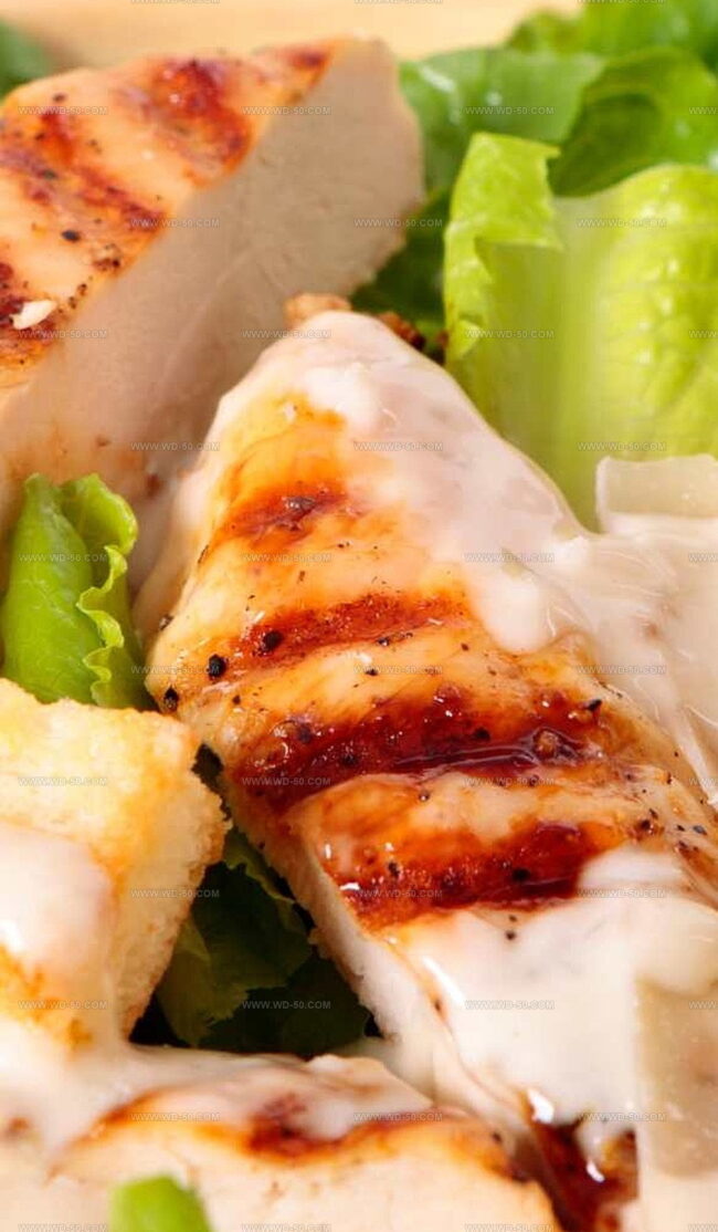 The balanced combination of proteins, vegetables, and rich dressing ensures a satisfying and nutritious meal.