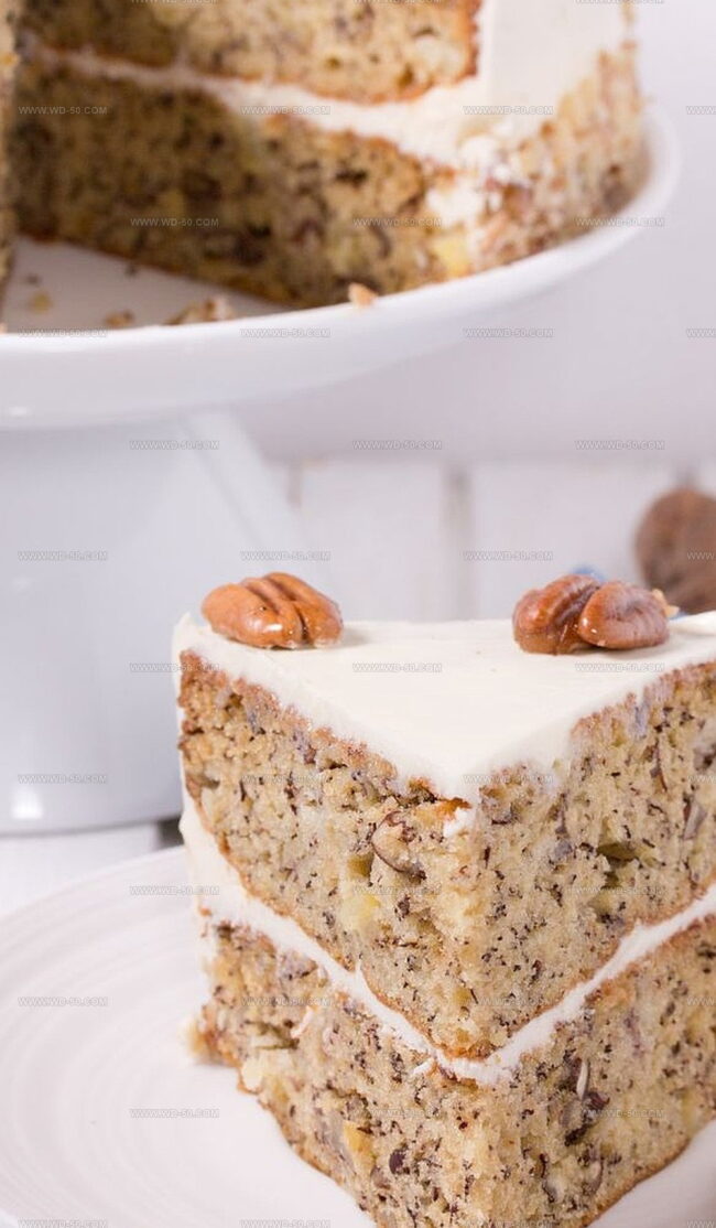 Delicate pecans provide textural contrast against moist cake layers, creating sensory memories with each slice.
