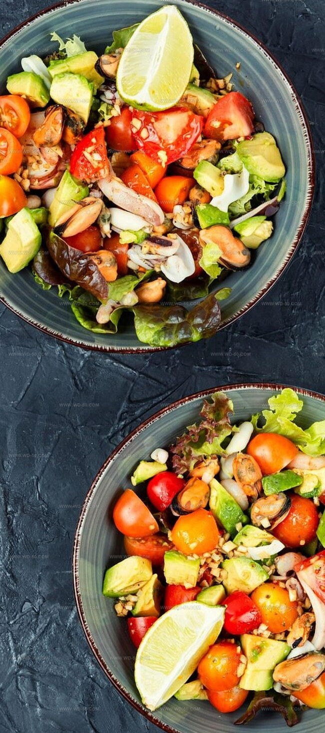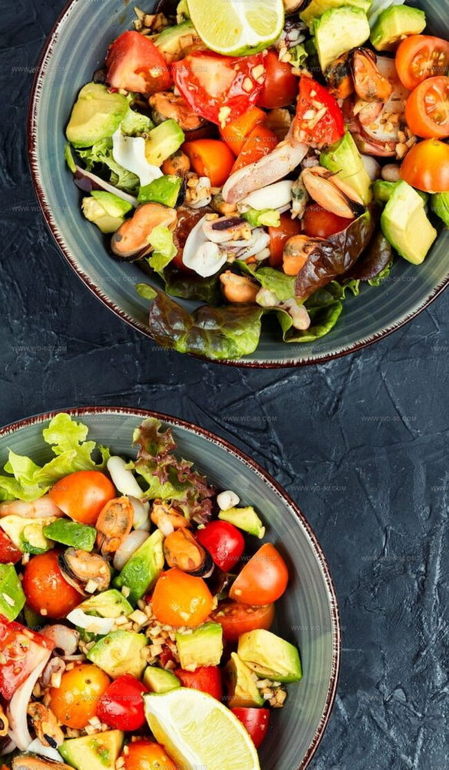 This luxurious combination marries succulent seafood with crisp, fresh ingredients in a dance of flavors and textures.
