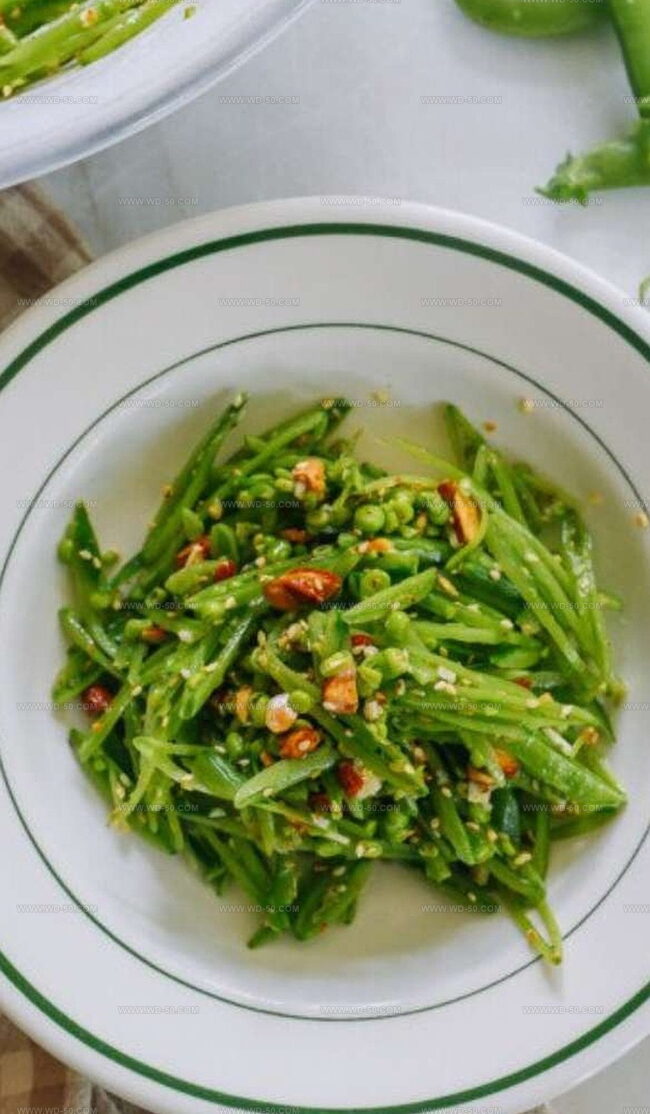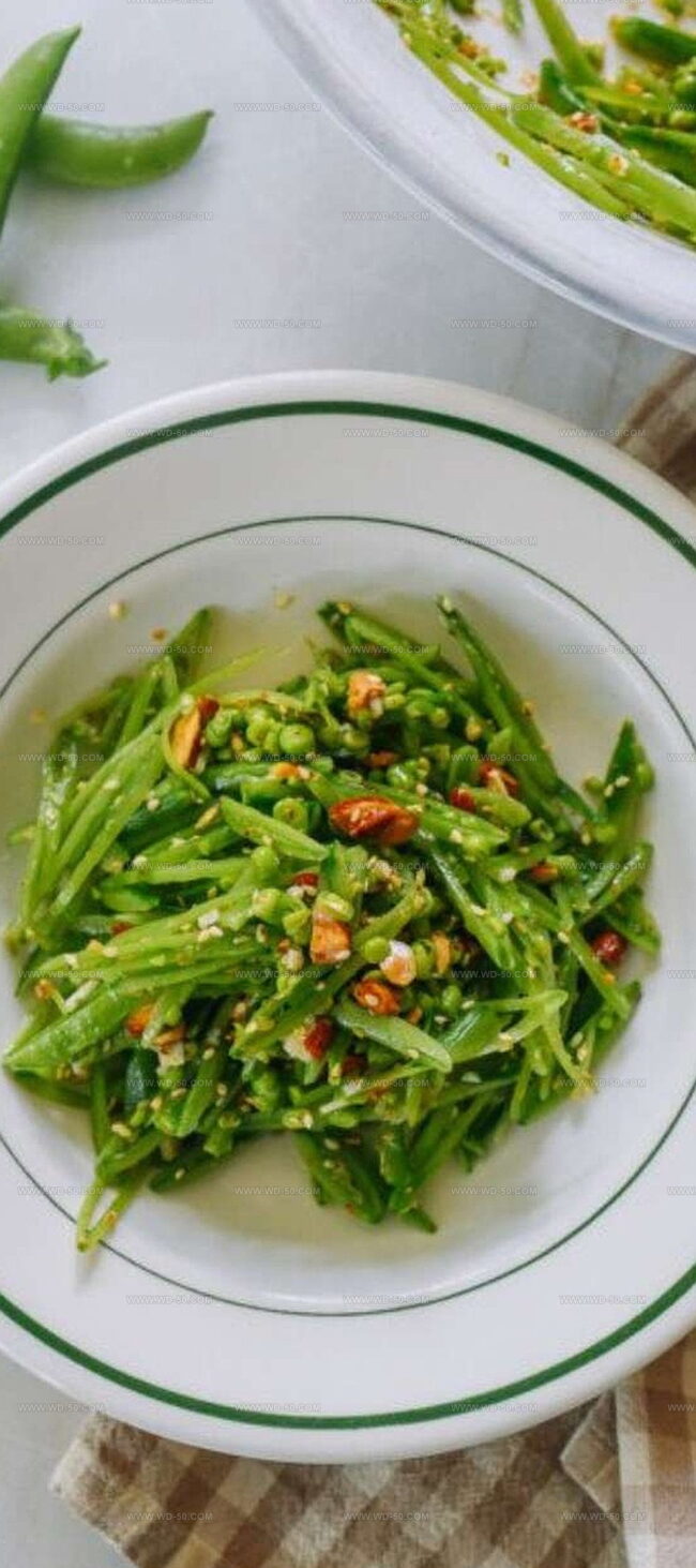 Delicate yet robust, snap peas offer a subtle sweetness complemented by aromatic seasonings and crunchy nuts.
