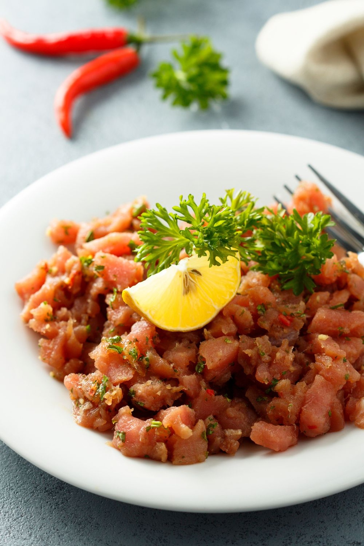 Fish Base:Marinade and Seasoning:Aromatic Herbs and Garnish:How to Make Tuna Tartare Like a Chef