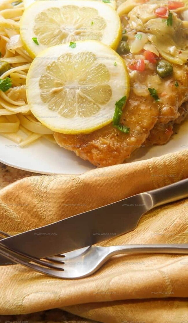 Crisp veal medallions bathed in zesty lemon-caper sauce create pure gastronomic harmony.
