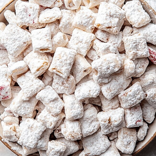 Indulgent White Chocolate Peppermint Puppy Chow delivers a festive crunch with creamy white chocolate and cool peppermint. Holiday snacking reaches delightful heights when crisp Chex cereal meets sweet seasonal magic, inviting you to savor pure winter comfort.