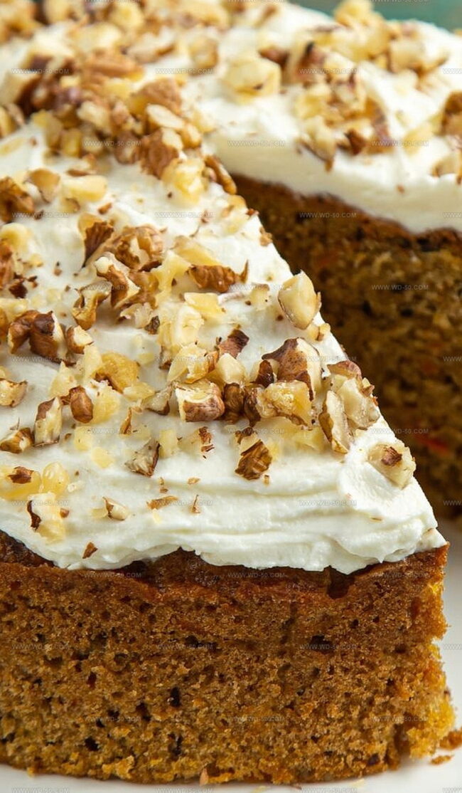 Final Assembly: Once cake has cooled completely, generously spread cream cheese frosting across the top. Optionally garnish with whole walnut halves for an elegant presentation.