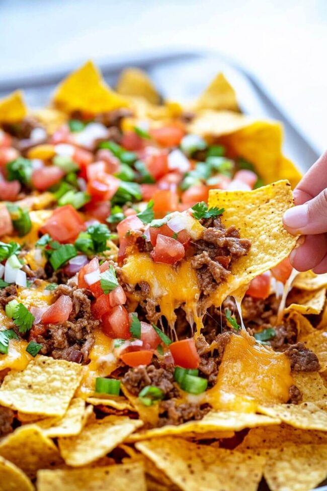 Swap ground beef with shredded chicken, pulled pork, or plant-based crumbles for diverse protein options that keep the nacho experience exciting and adaptable to different dietary preferences.