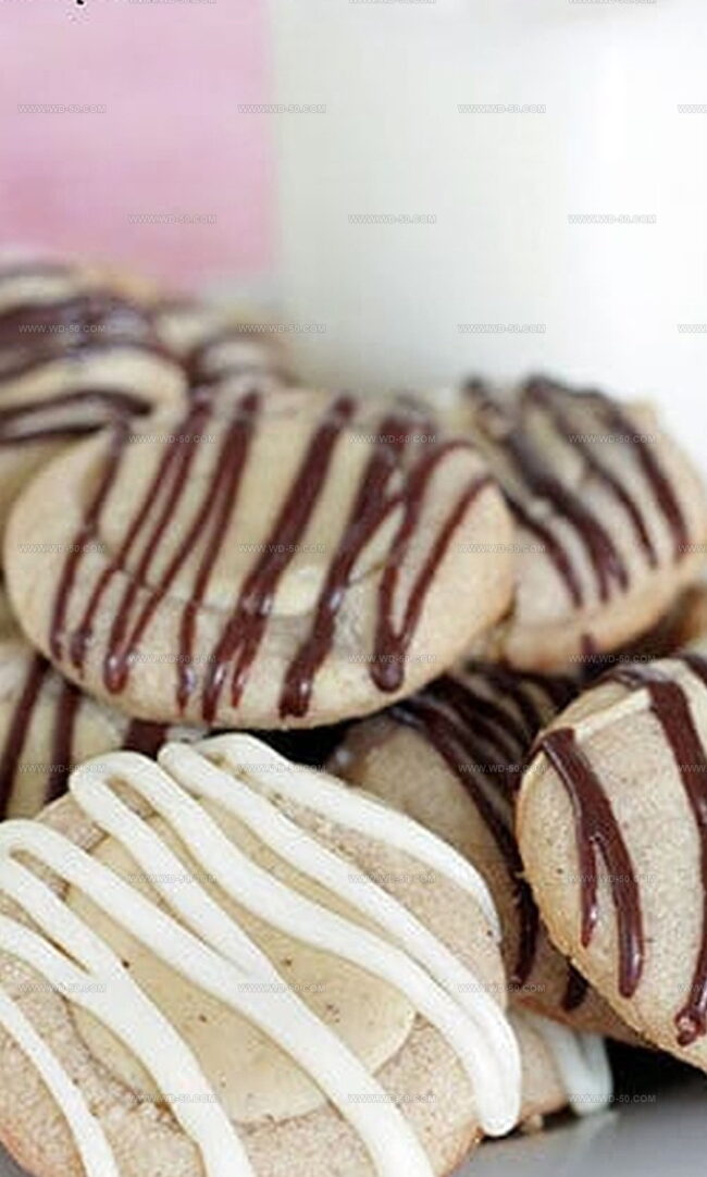 - Decorate and Cool: Transfer cookies to wire racks and allow to cool completely. Melt white and semi-sweet chocolate with vegetable shortening, then drizzle decoratively over cookies using a piping bag, creating an elegant two-toned presentation.