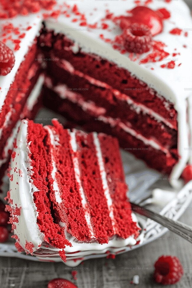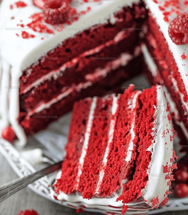 The deep crimson batter swirls with cocoa’s delicate warmth, creating a stunning visual feast.