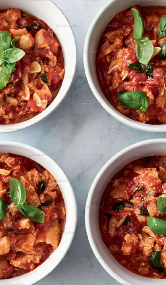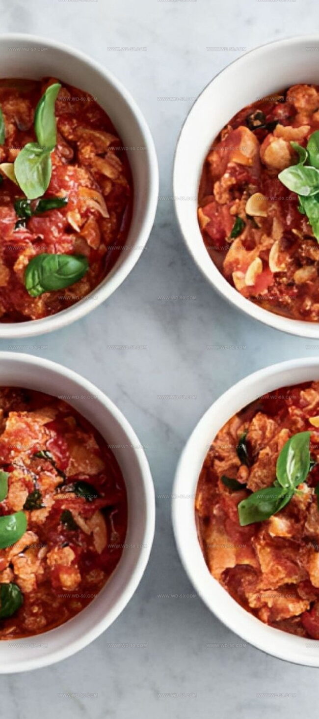 Rich tomato essence dances through Jamie Oliver’s signature soup, weaving Mediterranean flavors into each spoonful.