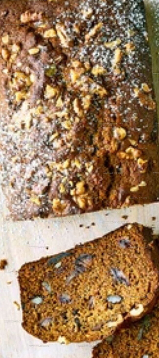 Chop walnuts and fold 3/4 of them into the cake batter. Pour the mixture into the prepared loaf tin. Sprinkle the remaining walnuts on top for extra crunch.