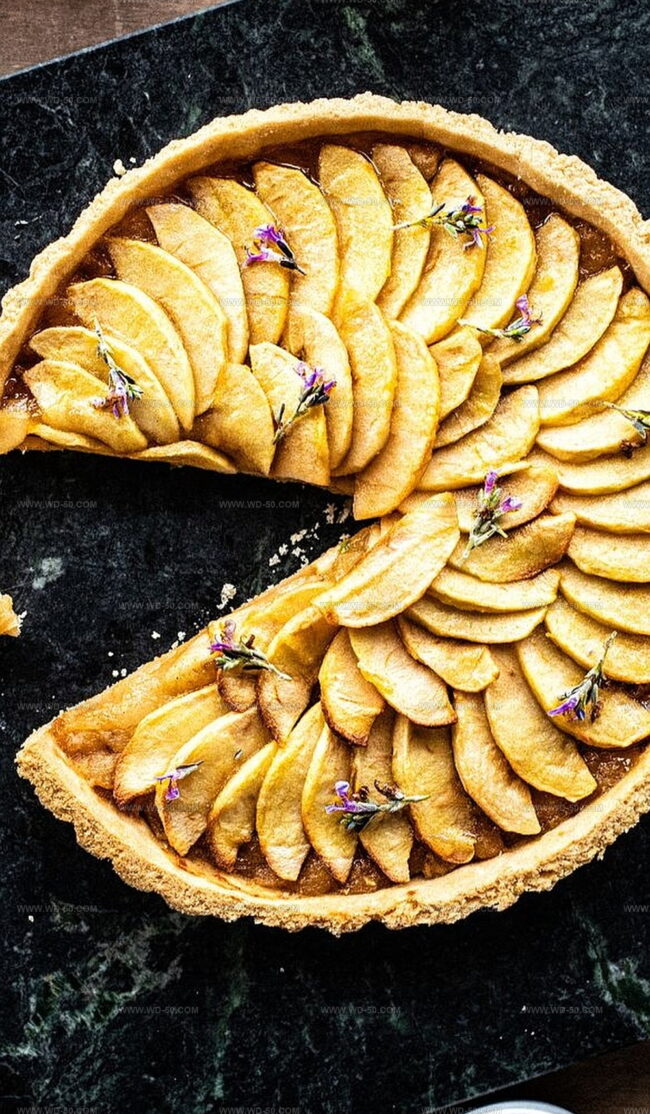 Canterbury Tart embodies classic British baking charm with its delightful combination of crisp pastry, sweet blackcurrant jam, tender apples, and rich almond custard.