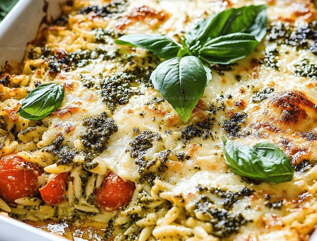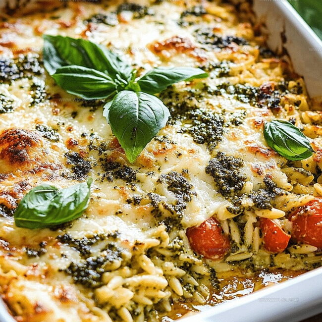 Savory Caprese Pesto Orzo Bake combines Italian summer flavors in one delightful dish. Mediterranean ingredients mingle perfectly, creating a comforting meal you’ll crave again and again.