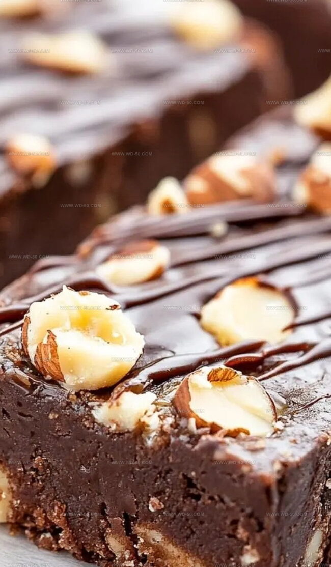Sprinkle chopped hazelnuts across the top, gently pressing them into the surface. Optional chocolate drizzle can add an extra layer of decadence.