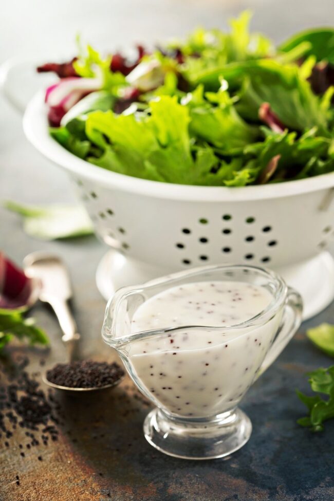 Drizzle Over Fresh Greens: Toss this vibrant poppy seed dressing with crisp mixed salad greens, creating a light and tangy side dish perfect for summer lunches.