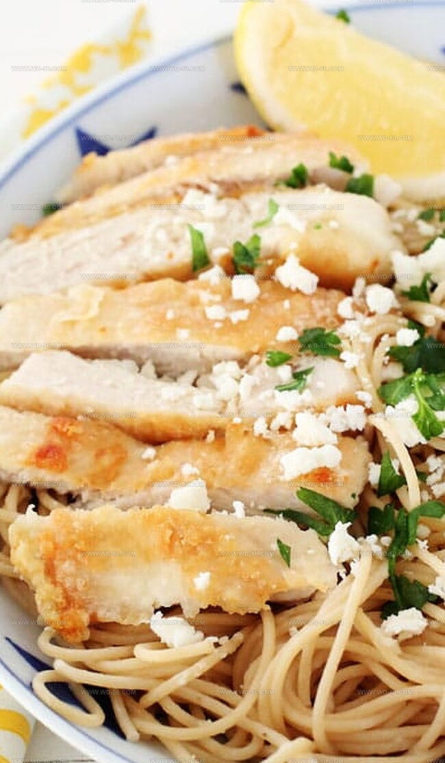 Final Touch Arrange sliced chicken over the spaghetti, then sprinkle with crumbled feta and fresh parsley for a restaurant-worthy presentation.